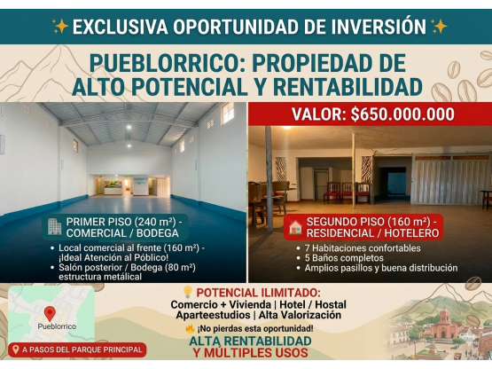 OPORTUNIDAD DE INVERSIÓN EN PUEBLORRICO ANTIOQUIA: CASA, LOCAL Y BODEGA